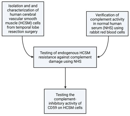 Earlier work suggested that CAA-afflicted cerebral blood vessels have increased MAC deposition without a compensatory upregulation of surface CD59 [3]. Over time, the cumulative cytotoxic and cytolytic damage could play a role in the gradual characteristic destruction of human cerebral vascular smooth muscle cells (HCSM). However, this potential sensitivity of primary HCSM cells to complement attack has not yet been reported. In this study, the primary HCSM cells were isolated from small blood vessels of the brain, obtained during routine temporal lobe biopsies. Their surface-expressed CD59 proteins were then inhibited in a controlled dose-dependent manner, in order to evaluate the role of CD59 in cellular resistance against complement-dependent cytotoxicity.