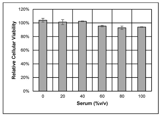 Aliquots (2 mL) of normal human serum (NHS) were thawed in a <4 °C water bath and kept on ice to minimize complement protein degradation. Heat-inactivated serum (HIS) was created by heating thawed NHS in a 56 °C bead bath for 30 min [44,45]. Serum dilutions ranging from 1:8 to 1:16 were established by adding volumes of serum and gelatin veronal buffer to rabbit RBCs (1.5 × 107 cells/mL). Gelatin veronal buffer or double-distilled water was added to rabbit RBCs to establish blank and total lysis controls, respectively. All RBC suspensions were subsequently incubated at 37 °C in 5% CO2 for 30 min with a gentle inversion halfway through. Cell suspensions were centrifuged at 1500× g for 5 min to sediment the RBCs, and the supernatants were transferred to a flat-bottomed 96-well plate at 100 µL/well as technical triplicates. To each well was added 100 µL of double-distilled water, and the absorbance values were measured at 540 nm. The percentage of total RBC lysis from each serum dilution was calculated with the following equation: