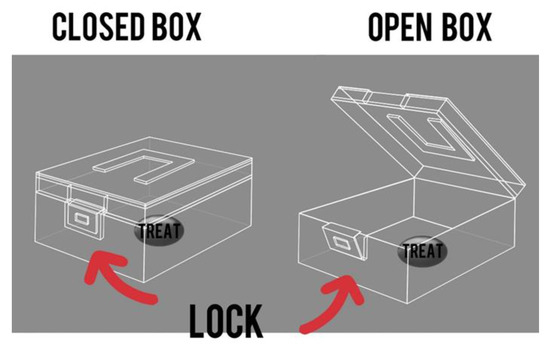 The “Box” test was demonstrated to be an effective method to evaluate the skills of primates to solve intellectual tasks that require concentration, resourcefulness, and the preserved memory of interaction with an object. Based on previous work wherein a primate needed to retrieve a lure from a box using a tool [22], we have proposed our simplified version for long-tailed macaques.