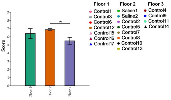 Some studies have indicated a difference in the intellectual capabilities of primates depending on gender [30,31]. Research on the impact of viral infection of the nervous system on behavior and cognitive abilities supposes that some important features carry gender differences, such as hormonal status, severity of illness, sensitivity to the virus, etc. These data necessitate the testing of both males and females to cover a multitude of aspects related to viral load. Our task was to determine whether gender differences affect the success rate in test performance and achievement using the “Confidence” methodology, also considering the location of the primate’s cage. We found no significant statistical differences between genders on different floors, indicating equal opportunities, in general, for both male and female long-tailed macaques in the experiment.