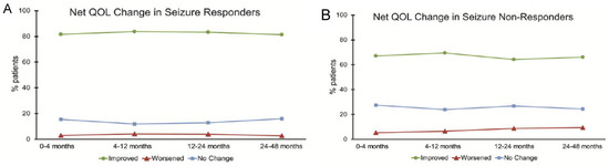 Seizure freedom is the most important predictor of quality of life (QOL) in epilepsy [72,73]. In patients implanted with VNS, Englot et al. found improvement in several physician-reported QOL metrics (Figure 3) that are more likely to occur in patients who were respondent to VNS [74].