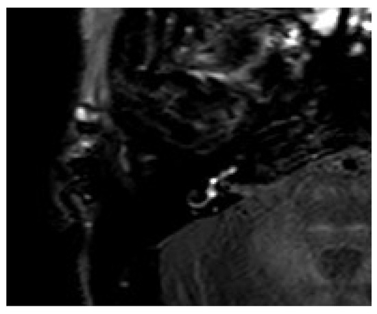 Figure 4). Otherwise, a hypointense sign was observed on the T1 sequence. A hyperintense signal intensity was found on the T2-weighted MRI in comparison to the other side.