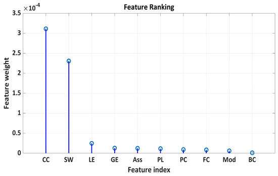 - Mathworks. Feature Selection Using Neighborhood Component Analysis for Classification—MATLAB Function Fscnca. 2022. Available online: https://www.mathworks.com/help/stats/fscnca.html (accessed on 5 March 2022).