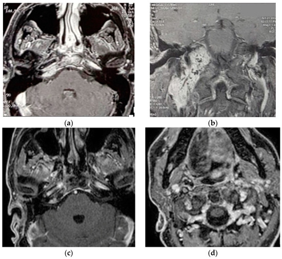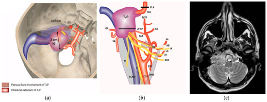 - Patel, S.J.; Sekhar, L.N.; Cass, S.P.; Hirsch, B.E. Combined approaches for resection of extensive glomus jugulare tumors. A review of 12 cases. J. Neurosurg. 1994, 80, 1026–1038. [Google Scholar] [CrossRef]