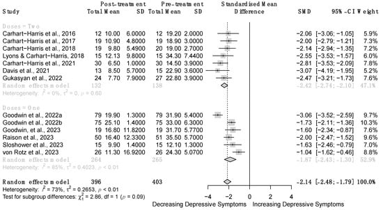 3.5. Single-Dose versus Two-Dose Psilocybin Administration on Depressive Symptoms