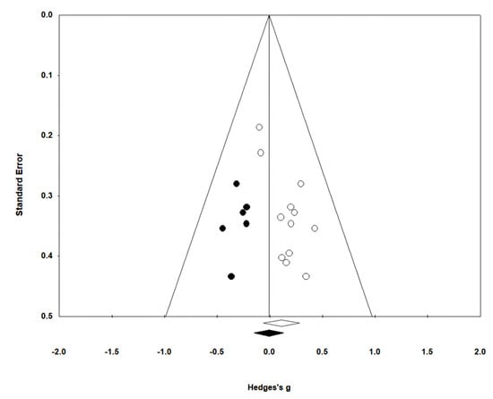 - Mavridis, D.; Salanti, G. How to Assess Publication Bias: Funnel Plot, Trim-and-Fill Method and Selection Models; Royal College of Psychiatrists: London, UK, 2014; p. 30. [Google Scholar]