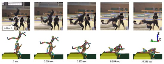 The falling motion of players reconstructed based on the accident video (Case 1).
