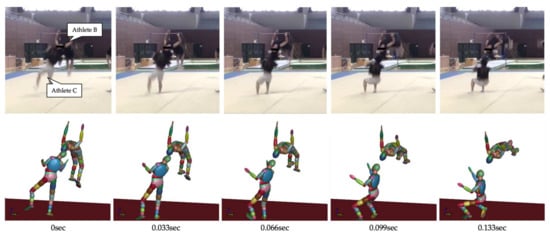 The falling motion of players reconstructed based on the accident video (Case 2).