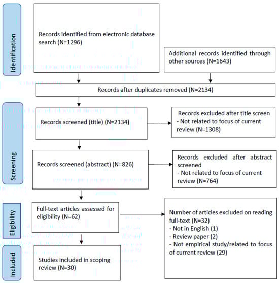 - Tricco, A.C.; Lillie, E.; Zarin, W.; O’Brien, K.K.; Colquhoun, H.; Levac, D.; Moher, D.; Peters, M.D.; Horsley, T.; Weeks, L. PRISMA extension for scoping reviews (PRISMA-ScR): Checklist and explanation. Ann. Intern. Med. 2018, 169, 467–473. [Google Scholar] [CrossRef]