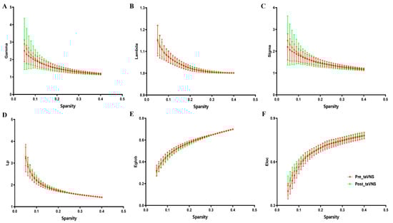 4.2. Global Topological Properties’ Alteration after taVNS Treatment
