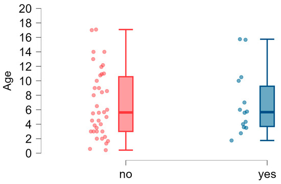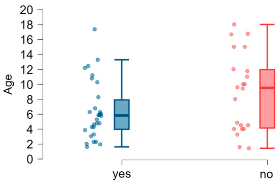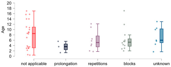 Speech disfluencies: age dispersion (years) in the groups of children with and without disfluencies.