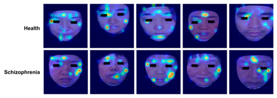 For one thing, we acquire the areas of the face on which the detection model is focused (Figure 5). With an attention mechanism, the model can give each facial feature a weight in SZ detection. By highlighting regions with high weights, we help clinicians understand which facial regions play a key role in the detection model and make a final diagnosis with clinical experience.
