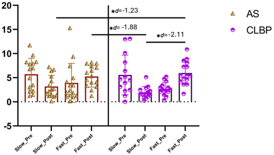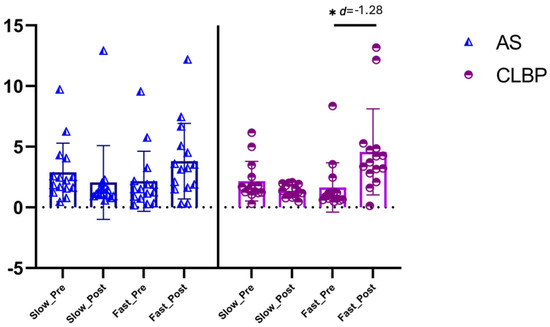 | Variable | AS-S (n = 15) | AS-F (n = 15) | CLBP-S (n = 15) | CLBP-F (n = 15) | p-Value |