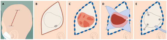 All craniotomies were performed by experienced neurosurgeons following a standardized surgical protocol to ensure consistency in the treatment approach [22]. The procedure involved the following steps, illustrated in Figure 1.