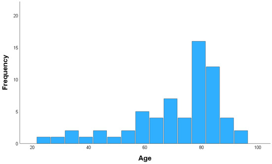 The study included 64 patients who underwent craniotomy for aSDH evacuation. The mean age of the cohort was 70.81, with a higher proportion of male patients (36/64, 56.3%) (Figure 2).