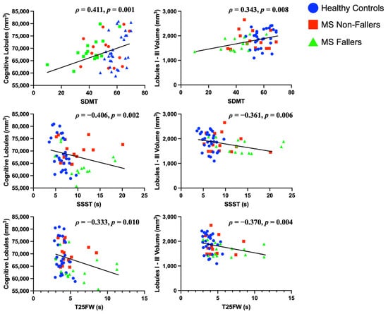 - Eskut, N.; Koc, A.M.; Köskderelioglu, A.; Bilgin, Y.O.U.; Tekindal, M.A. Is there a relationship between fall status, cognition and cerebellar lobule volume in patients with multiple sclerosis? Appl. Neuropsychol. Adult 2023, 30, 535–545. [Google Scholar] [CrossRef] [PubMed]