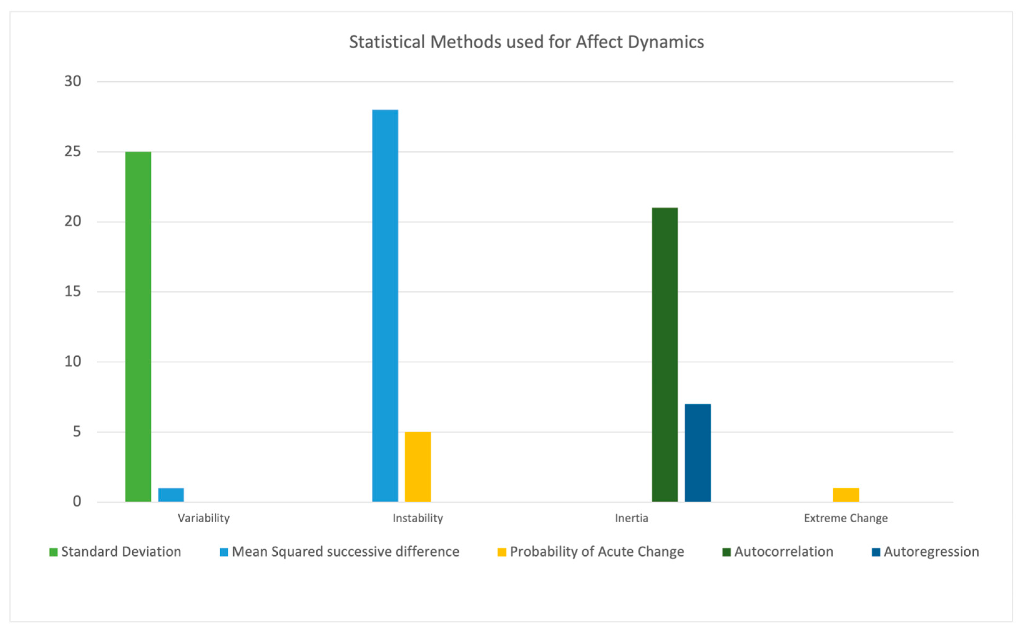 Inertia | Resistance to change; the tendency for affect to persist from one timepoint to the next | Autocorrelation | [11,12] |