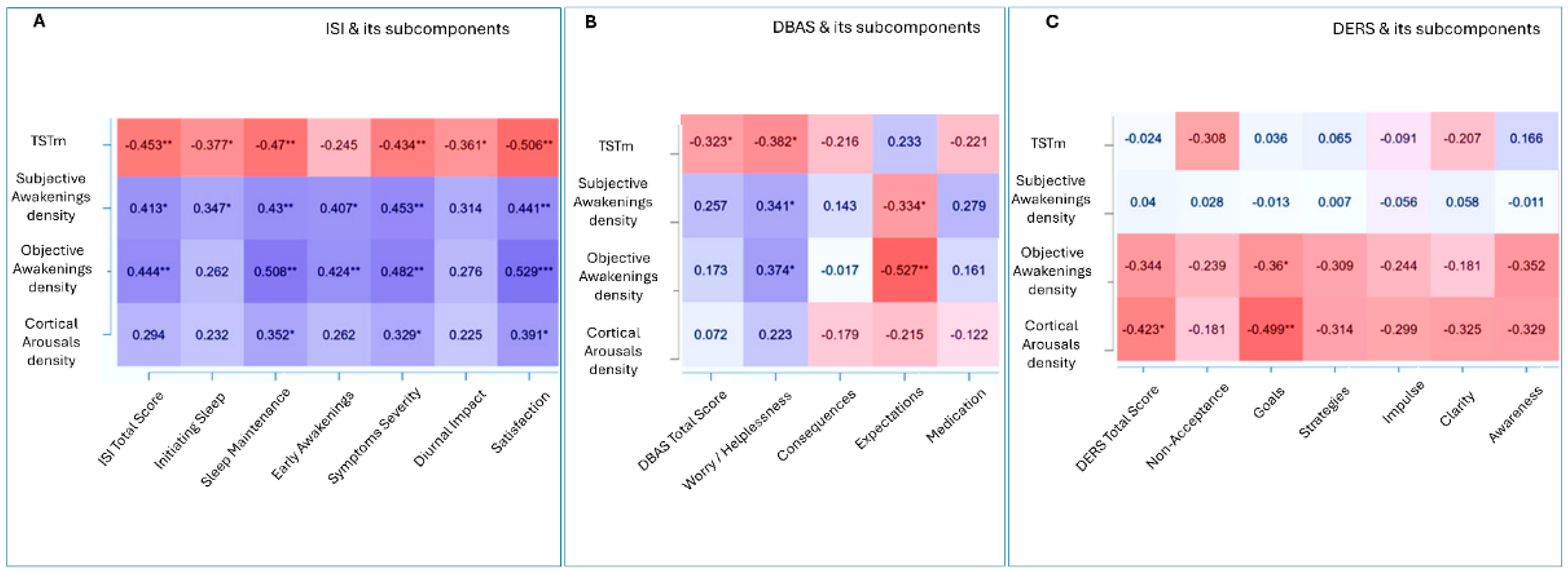 Dysfunctional Beliefs and Attitudes about Sleep [31] | DBAS | It assesses maladaptive beliefs and attitudes related to sleep, reflecting (a) misconceptions or amplifications about the causes and the consequences of insomnia (Consequences); (b) unrealistic sleep expectations (Expectations); (c) diminished perceptions of control and predictability of sleep (Worry/Helplessness); and (d) faulty beliefs about sleep-promoting practices (Medication) [32]. |