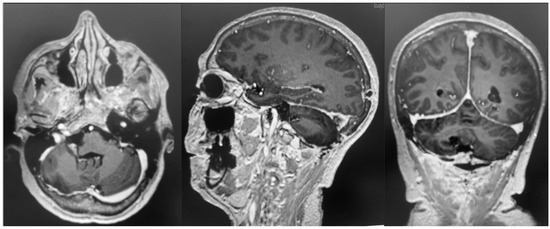 Postoperative MRI + c: these pictures show the gross total resection of the lesion with no signs of postoperative complications.