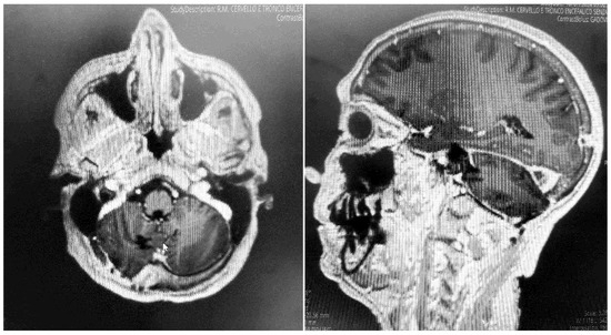 The patient underwent an early postoperative MRI, which documented the complete resection of the lesion without any postoperative complications (Figure 4). The patient was discharged with a significant improvement in the neurological examination at 7 days after surgery. Histopathology confirmed a diagnosis of meningioma, WHO grade 1, subtype fibrous.