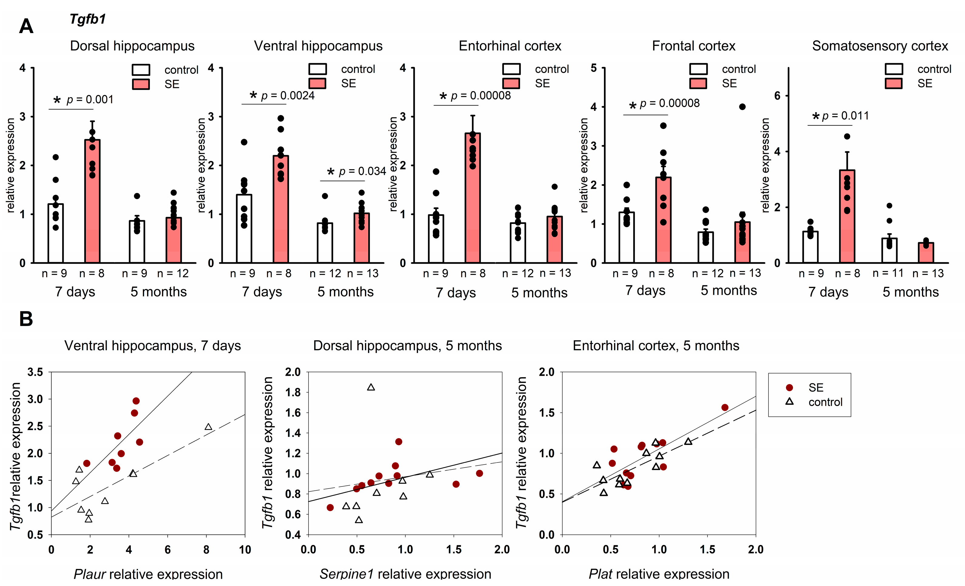 - Li, L.Y.; Li, J.L.; Zhang, H.M.; Yang, W.M.; Wang, K.; Fang, Y.; Wang, Y. TGFβ1 Treatment Reduces Hippocampal Damage, Spontaneous Recurrent Seizures, and Learning Memory Deficits in Pilocarpine-Treated Rats. J. Mol. Neurosci. 2013, 50, 109–123. [Google Scholar] [CrossRef]