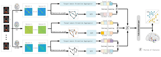 In terms of the application of population graphs, Cao et al. constructed a deep ASD diagnosis framework based on 16-layer GCN. Integrating ResNet cells and DropEdge policies into this framework avoids problems such as vanishing gradients, overfitting, and oversmoothing [11]. Tian et al. proposed an extensible hierarchical graph convolutional network. Firstly, they constructed GCN based on brain regions of interest to extract structural and functional connection features between different ROIs, and combined them with scale information to build a population-based GCN model [12]. Although these methods can alleviate the impact of data heterogeneity, they lack feature representations of different views.