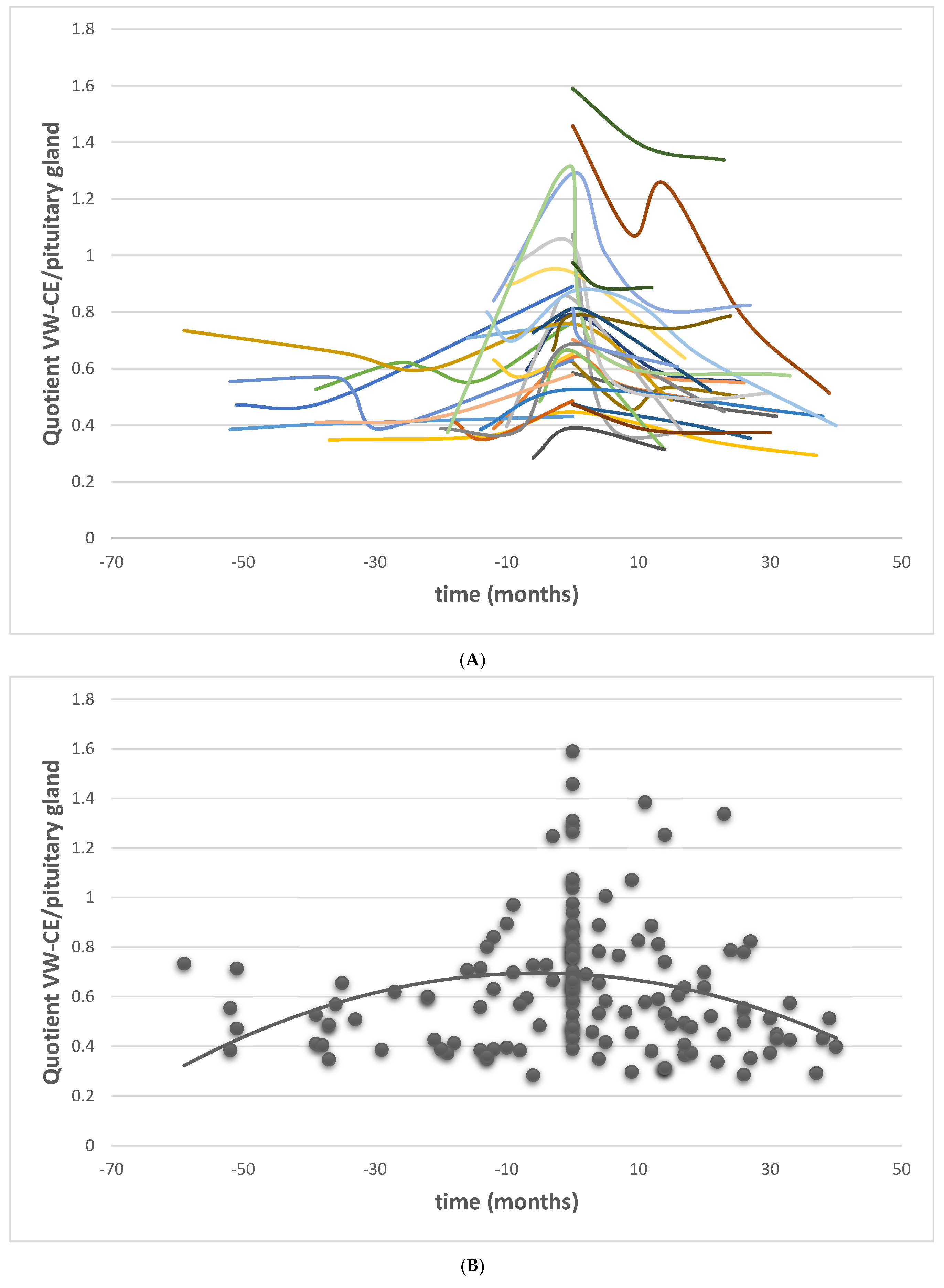 3.2. Signal Intensity of Pituitary Stalk and White Matter of the Temporal Lobe