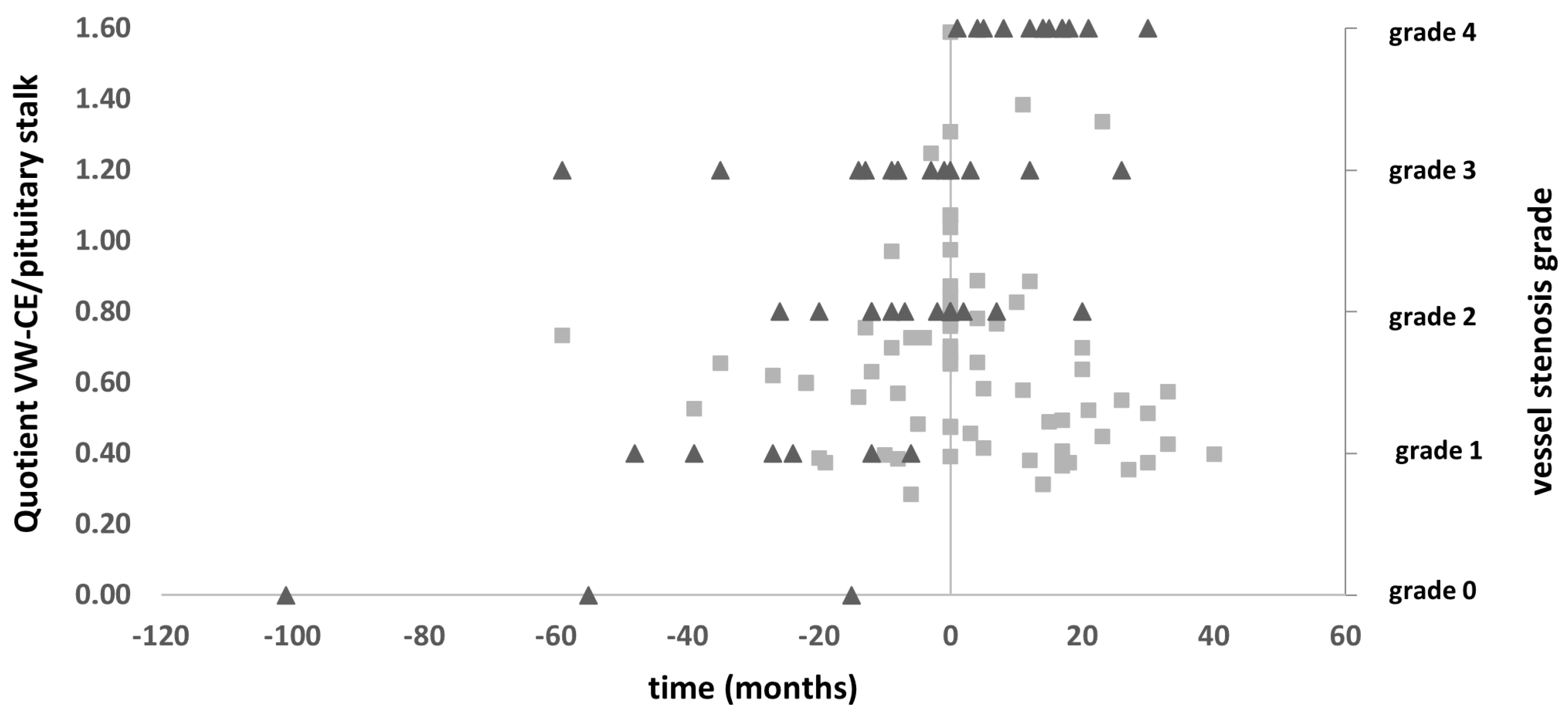 - Roder, C.; Hauser, T.-K.; Ernemann, U.; Tatagiba, M.; Khan, N.; Bender, B. Arterial wall contrast enhancement in progressive moyamoya disease. J. Neurosurg. 2020, 132, 1845–1853. [Google Scholar] [CrossRef]