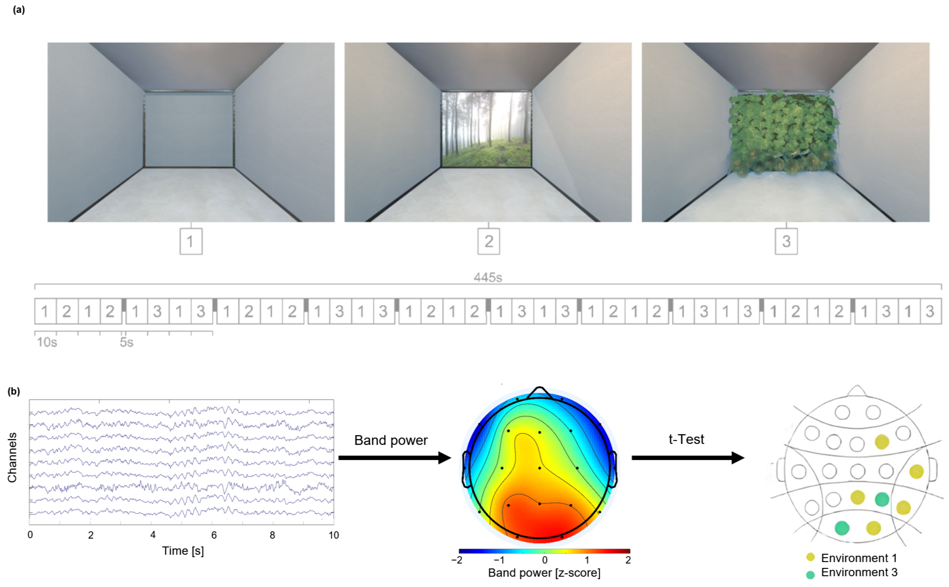 - Jung, D.; Kim, D.; Kim, N. Bringing nature into hospital architecture: Machine learning-based EEG analysis of the biophilia effect in virtual reality. J. Environ. Psychol. 2023, 89, 102033. Available online: http://linkinghub.elsevier.com/retrieve/pii/S0272494423000816 (accessed on 3 October 2025). [CrossRef]