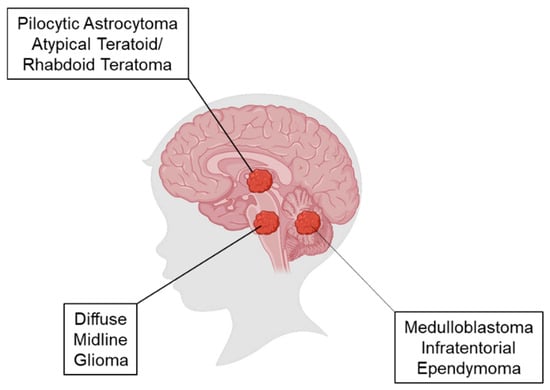 - Subramanian, S.; Admad, T. Childhood Brain Tumors, 2022 StatPerals Publishing ed; StatPearls Publishing LLC: Treasure Island, FL, USA, 2022. [Google Scholar]
