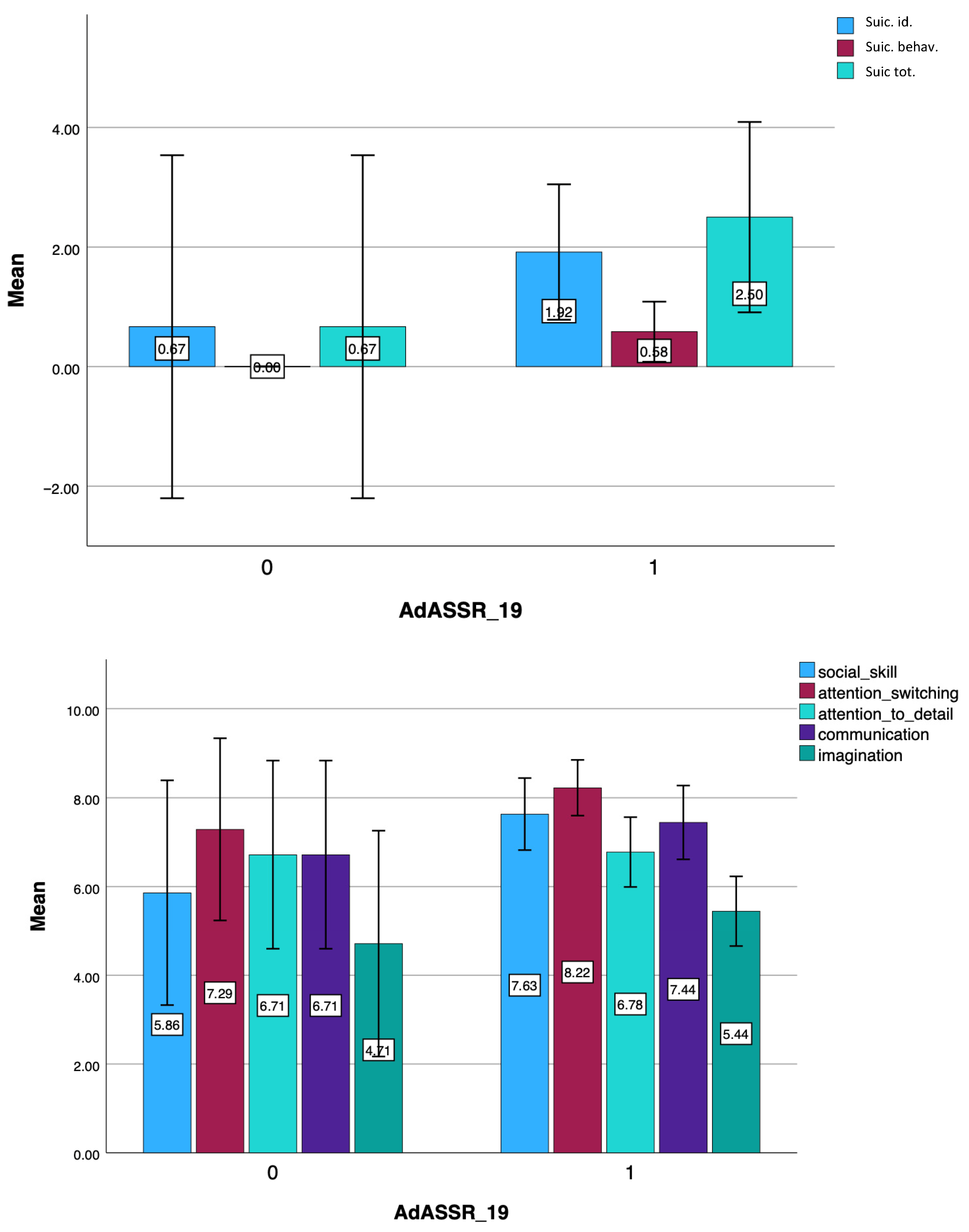 | Suic. id. | 0.67 ± 1.15 | 2.00 ± 1.69 | −1.291 | 0.215 | 1.633 | −2.075 | 0.467 |