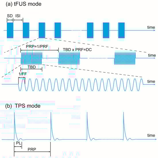 - Zeng, K.; Li, Z.; Xia, X.; Wang, Z.; Darmani, G.; Li, X.; Chen, R. Effects of different sonication parameters of theta burst transcranial ultrasound stimulation on human motor cortex. Brain Stimul. 2024, 17, 258–268. [Google Scholar] [CrossRef]