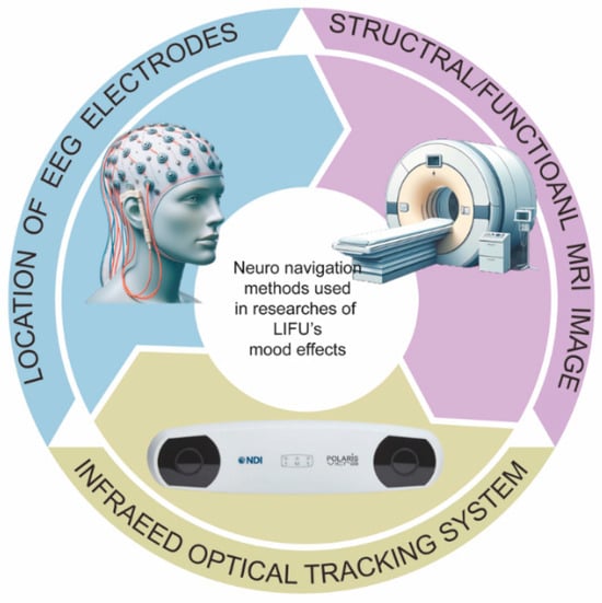- Oh, J.; Ryu, J.S.; Kim, J.; Kim, S.; Jeong, H.S.; Kim, K.R.; Kim, H.C.; Yoo, S.S.; Seok, J.H. Effect of Low-Intensity Transcranial Focused Ultrasound Stimulation in Patients With Major Depressive Disorder: A Randomized, Double-Blind, Sham-Controlled Clinical Trial. Psychiatry Investig. 2024, 21, 885–896. [Google Scholar] [CrossRef]