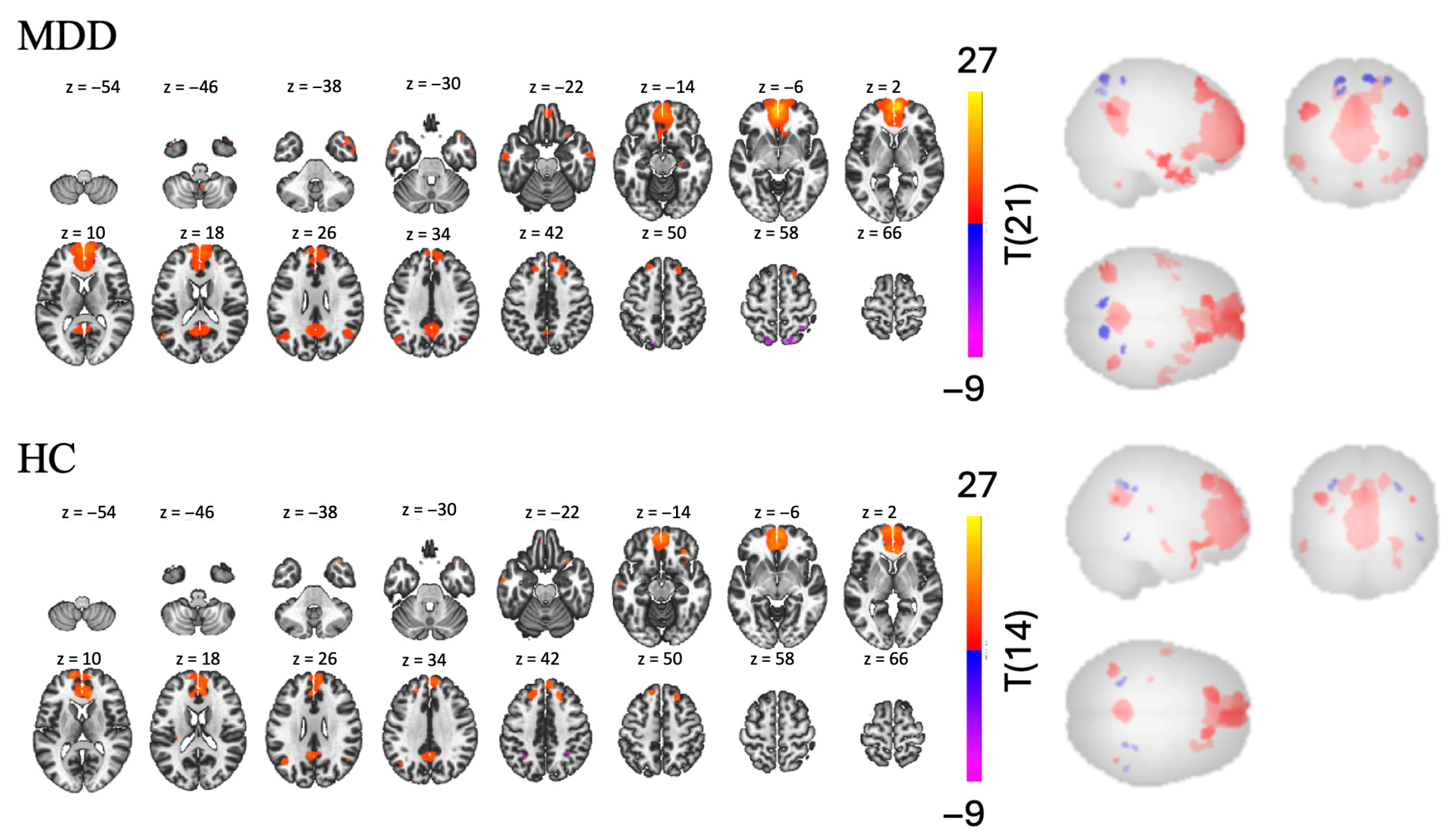 - Kaiser, R.H.; Andrews-Hanna, J.R.; Wager, T.D.; Pizzagalli, D.A. Large-scale network dysfunction in major depressive disorder: A meta-analysis of resting-state functional connectivity. JAMA Psychiatry 2015, 72, 603–611. [Google Scholar] [CrossRef]