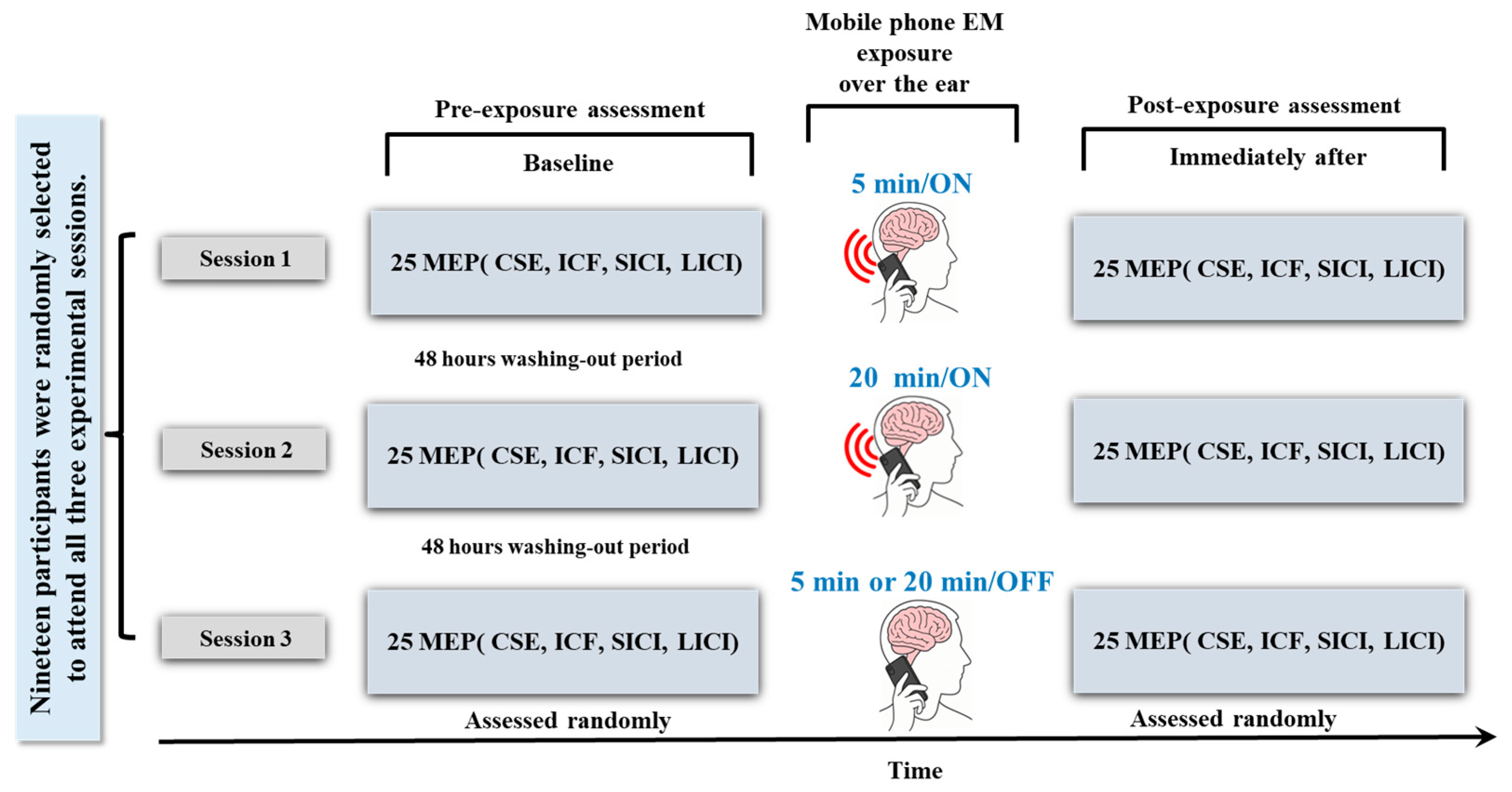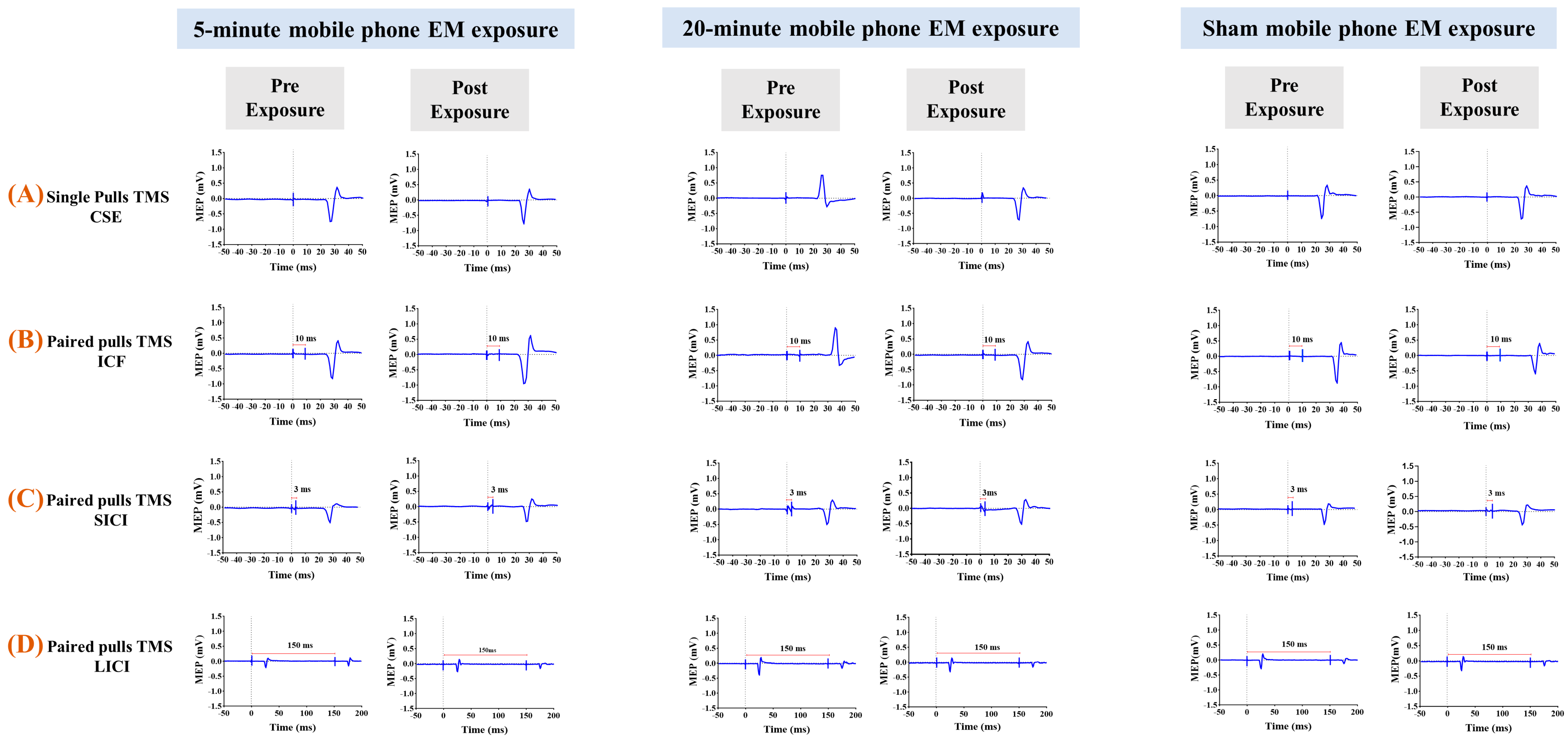 - To determine whether a 5 min exposure to 5G mobile phone EM exposure significantly affects CSE and associated inhibitory and facilitatory mechanisms (ICF, SICI, and LICI) compared to a sham condition.