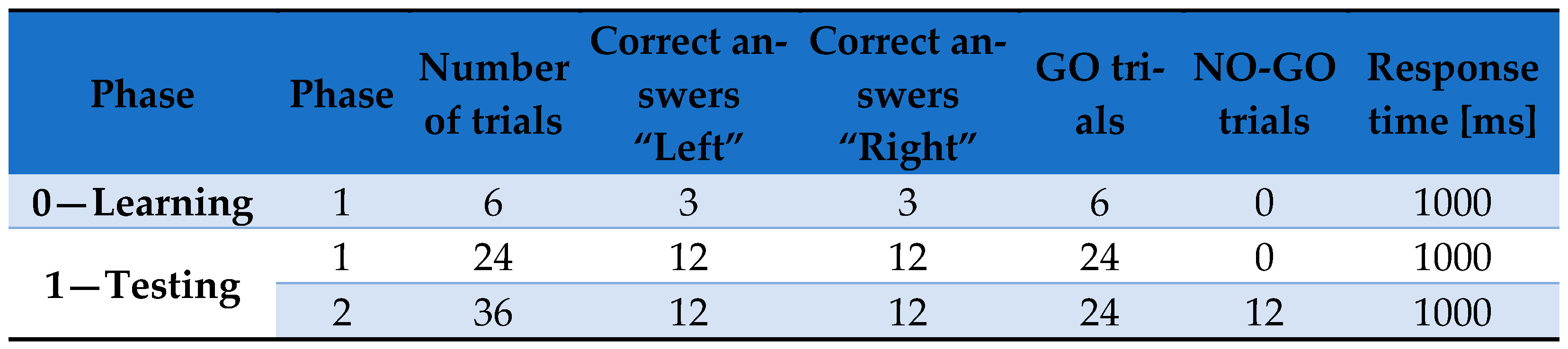 - Verbruggen, F.; Aron, A.R.; Band, G.P.H.; Beste, C.; Bissett, P.G.; Brockett, A.T.; Brown, J.W.; Chamberlain, S.R.; Chambers, C.D.; Colonius, H.; et al. A consensus guide to capturing the ability to inhibit actions and impulsive behaviors in the stop-signal task. eLife 2019, 8, e46323. [Google Scholar] [CrossRef]