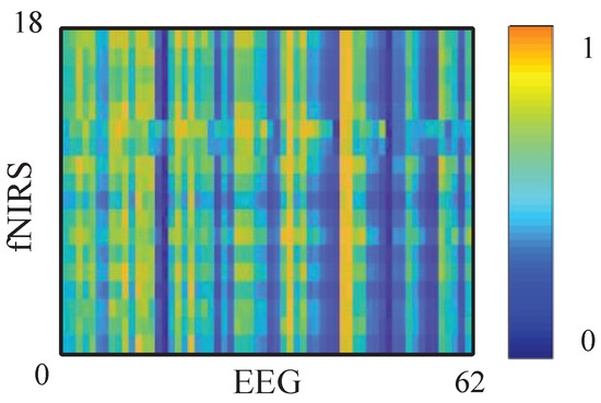 The GC matrix of fNIRS to EEG signal. Darker colors indicate lower GC values (weaker directed causal influence between EEG and fNIRS), whereas brighter colors indicate higher GC values (stronger causal coupling between the two modalities).