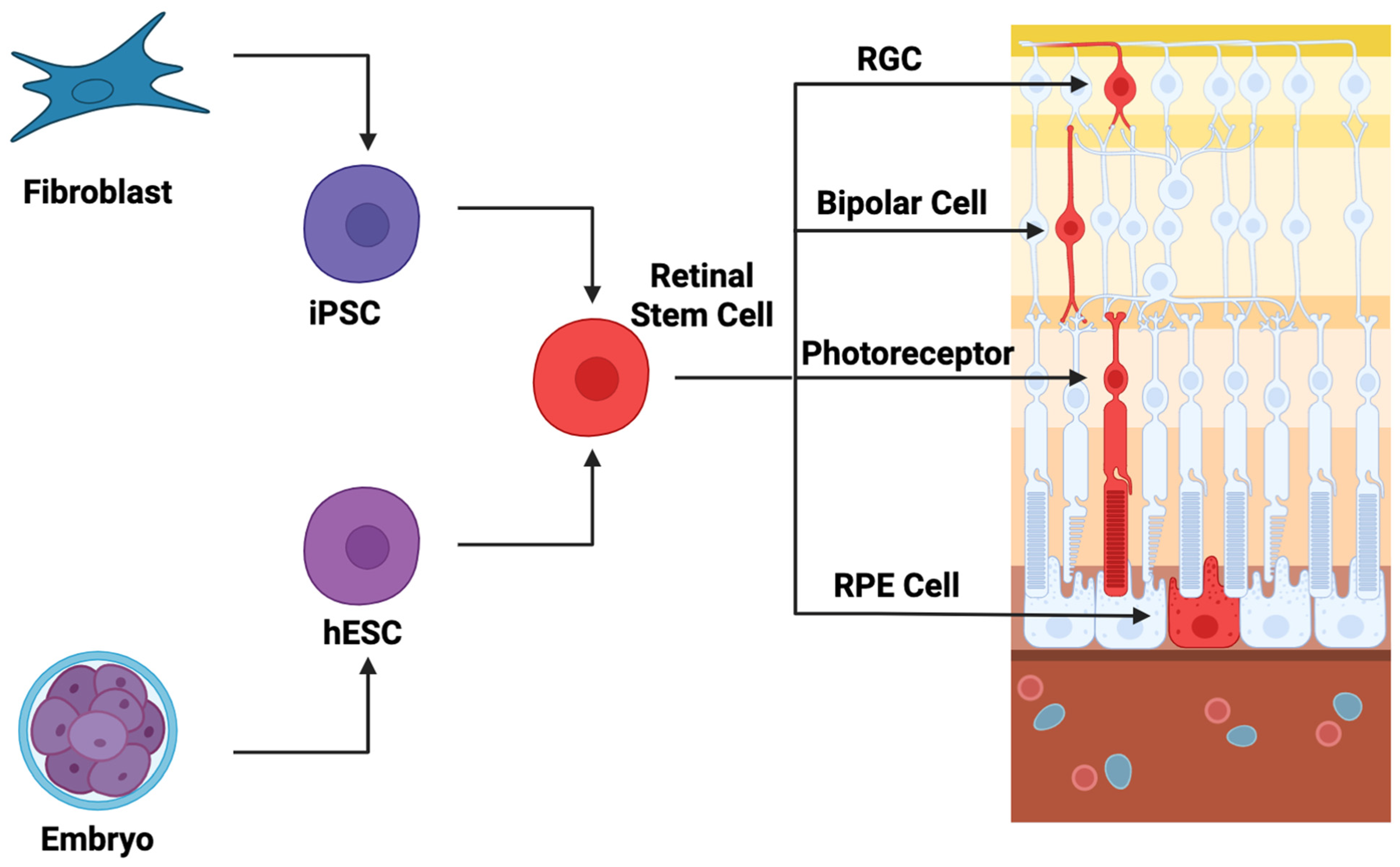 | Stem Cell Therapy | hESCs, iPSCs, mesenchymal | AMD, Stargardt’s Disease | BCVA ≥ 0–20 words |