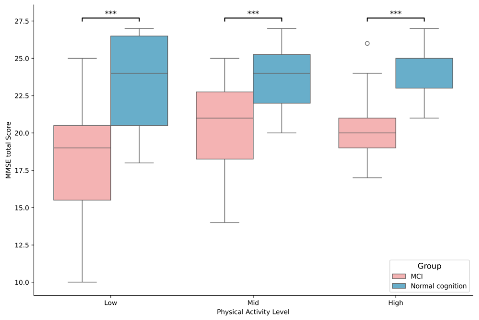 3.2. Differences in Cognitive Health Based on MCI Status and Physical Activity Levels