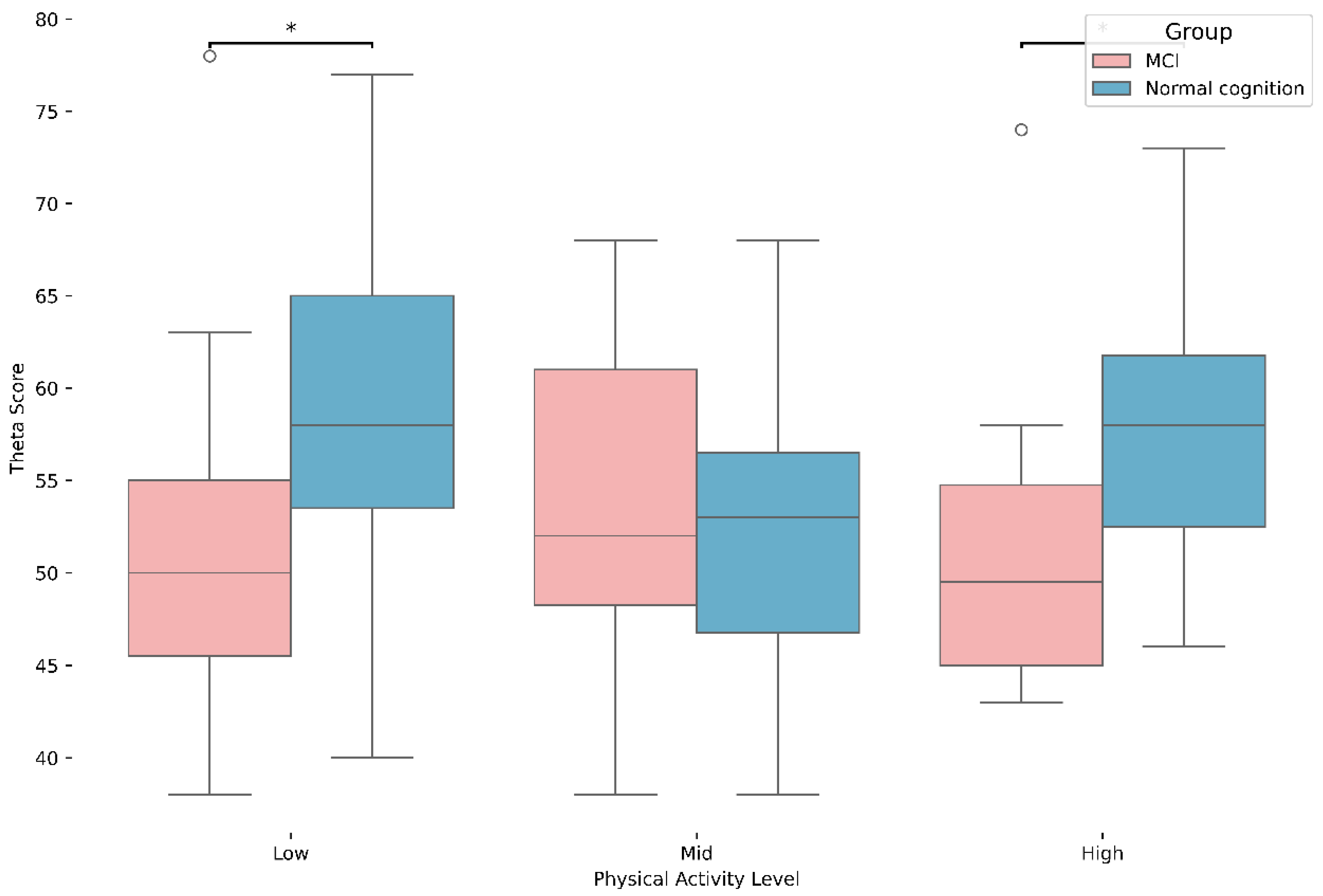 3.3. Differences in Brain Waves Based on MCI Status and Physical Activity Levels