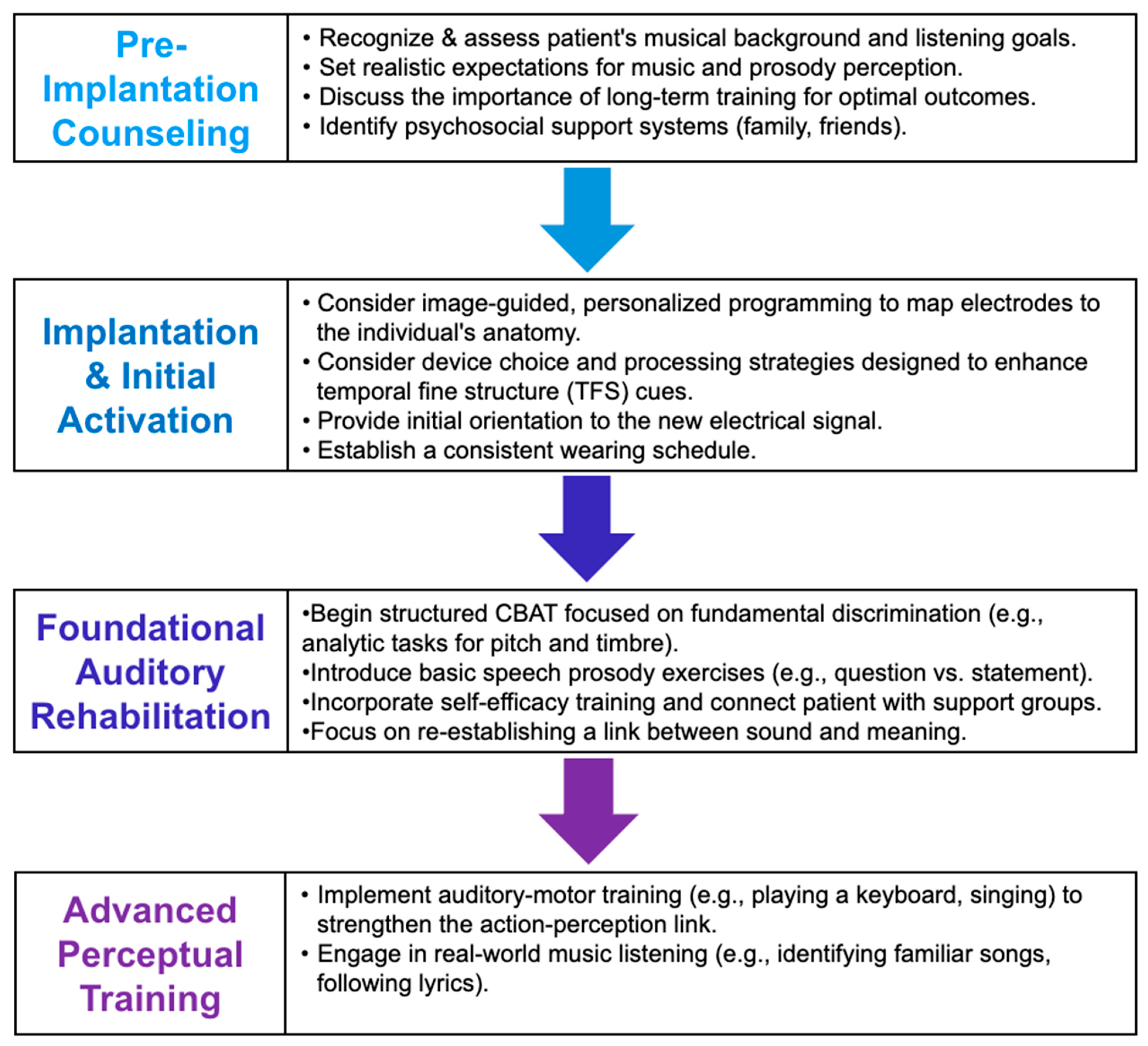 - Gfeller, K.; Mallalieu, R. Psychosocial and auditory factors that influence successful music-based auditory training in pediatric cochlear implant recipients. Front. Hum. Neurosci. 2023, 17, 1308712. [Google Scholar] [CrossRef] [PubMed]