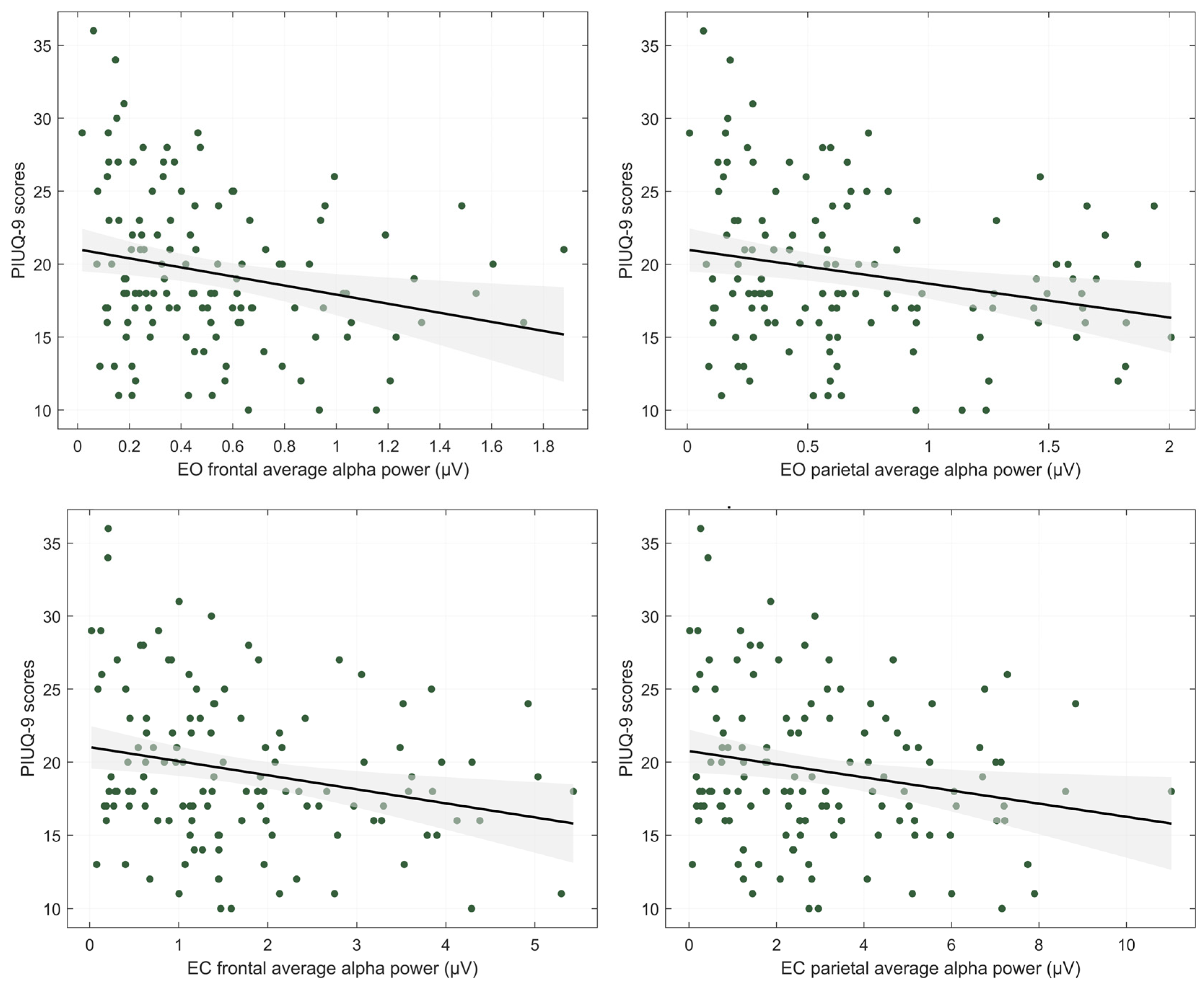 3.2. Correlations Between Internet Use Severity and Alpha Power