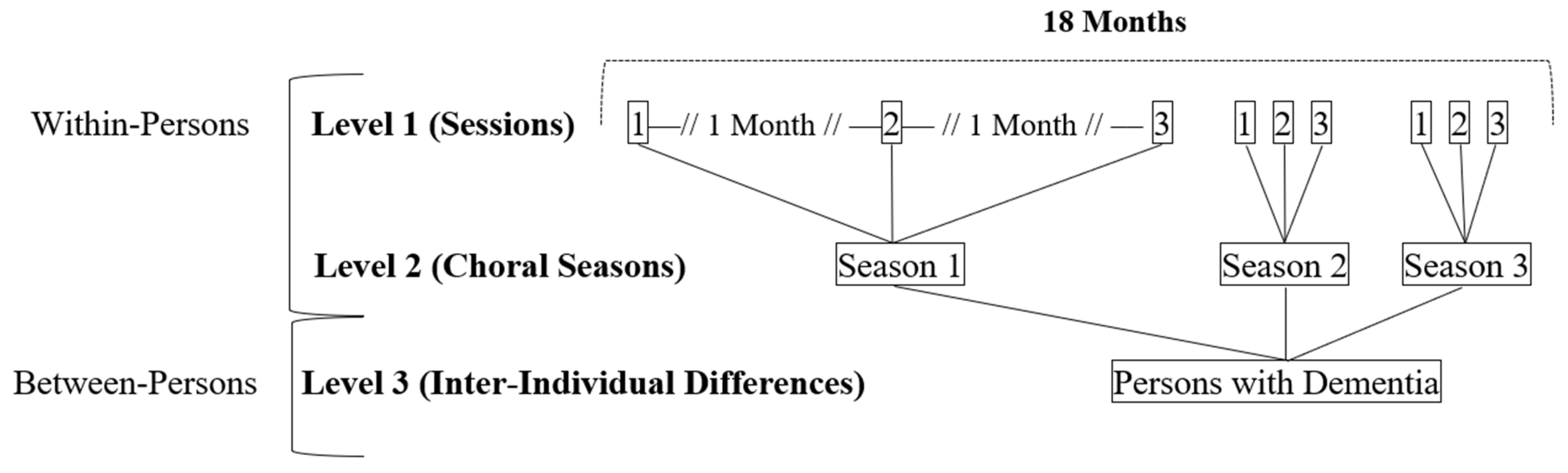 - McDowell, C.; Tamburri, N.; Smith, A.P.; Dujela, C.; Sheets, D.J.; MacDonald, S. Exploring the Impact of Community-Based Choral Participation on Cognitive Function and Well-Being for Persons with Dementia: Evidence from the Voices in Motion Project. Aging Ment. Health 2023, 27, 930–937. [Google Scholar] [CrossRef]
