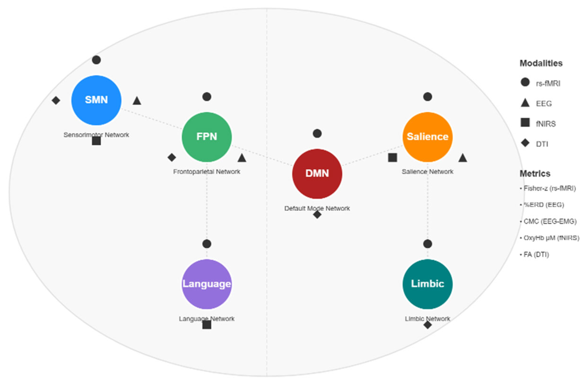 | BSI/LC | Brain symmetry index/laterality coefficient | Hemispheric balance | Unitless indices | Simple asymmetry | Coarse; hides network specifics |