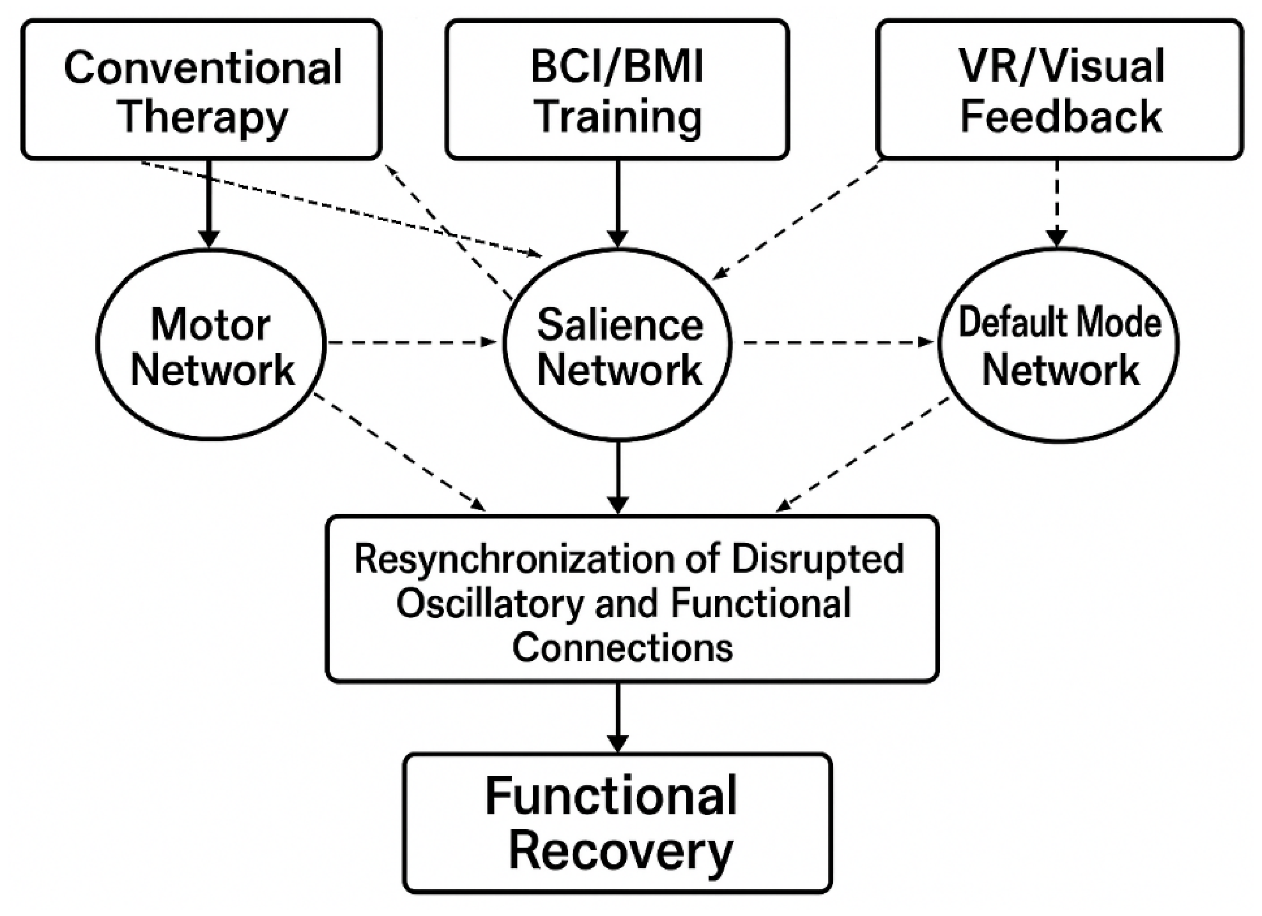 Chicago/Turabian StyleKuipers, Jan A., Norman H. Hoffman, Frederick Robert. Carrick, and Monèm Jemni. 2025. "Reconnecting Brain Networks After Stroke: A Scoping Review of Conventional, Neuromodulatory, and Feedback-Driven Rehabilitation Approaches" Brain Sciences 15, no. 11: 1217. https://doi.org/10.3390/brainsci15111217