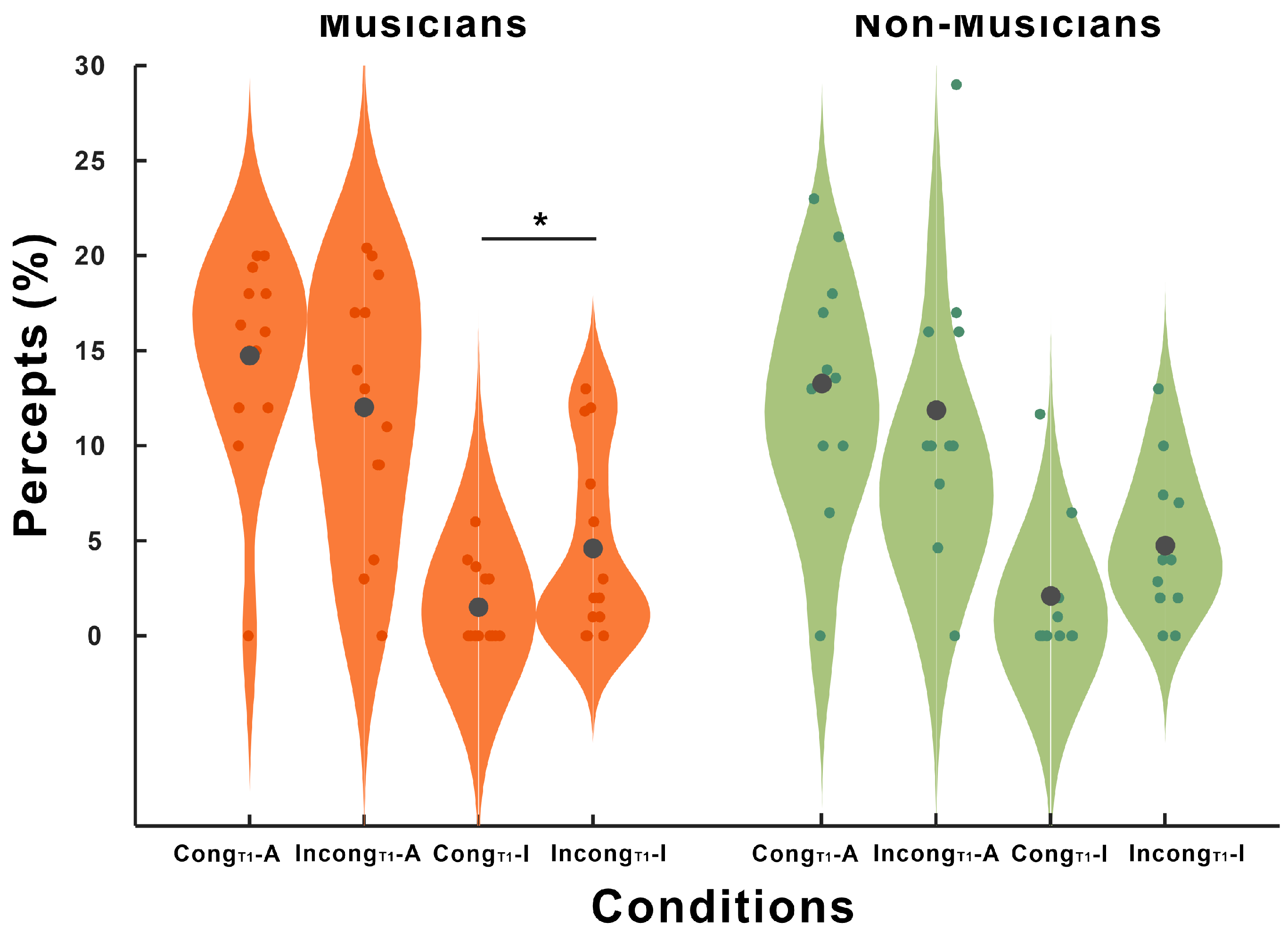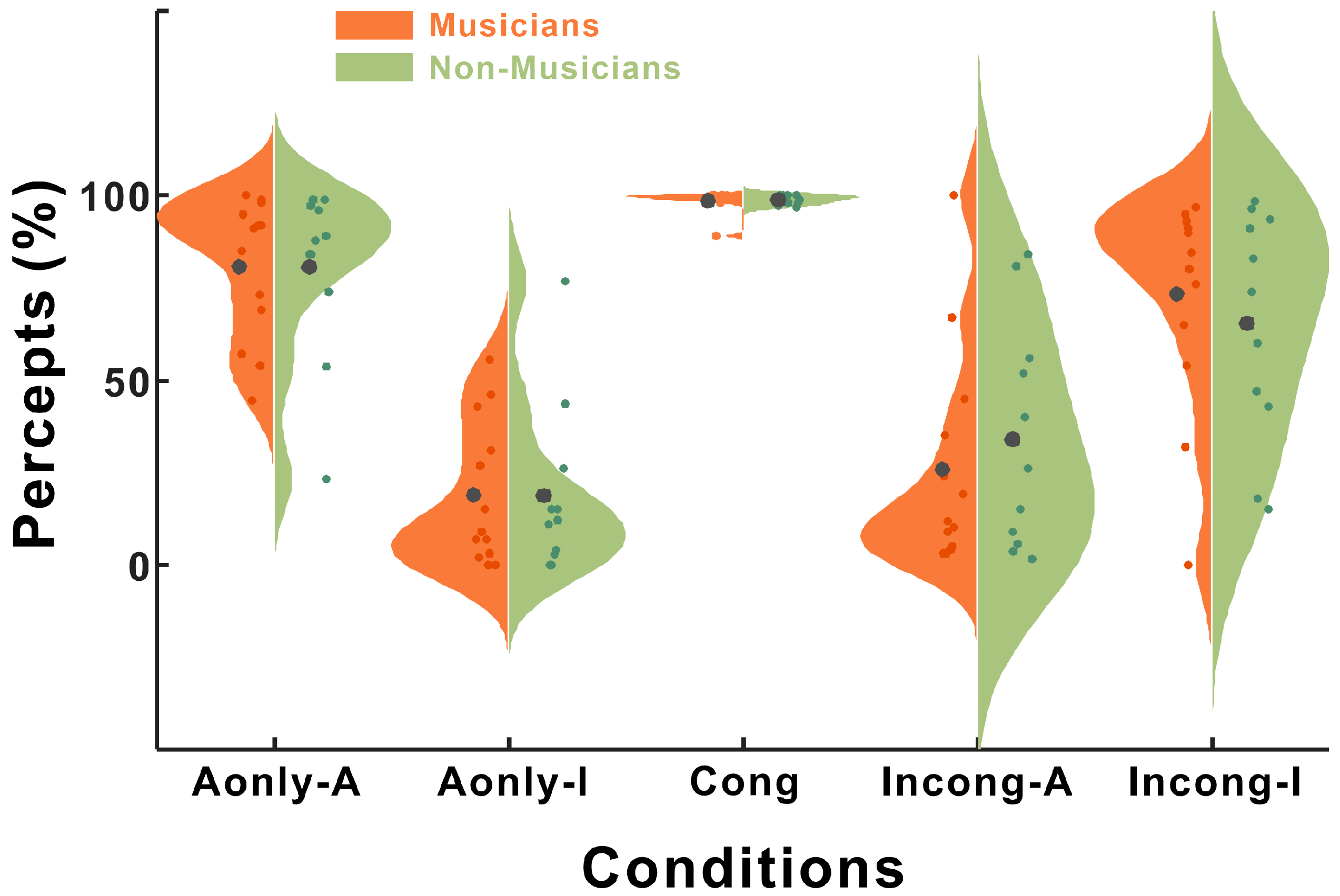 - Politzer-Ahles, S.; Pan, L. Skilled musicians are indeed subject to the McGurk effect. R. Soc. Open Sci. 2019, 6, 181868. [Google Scholar] [CrossRef]
