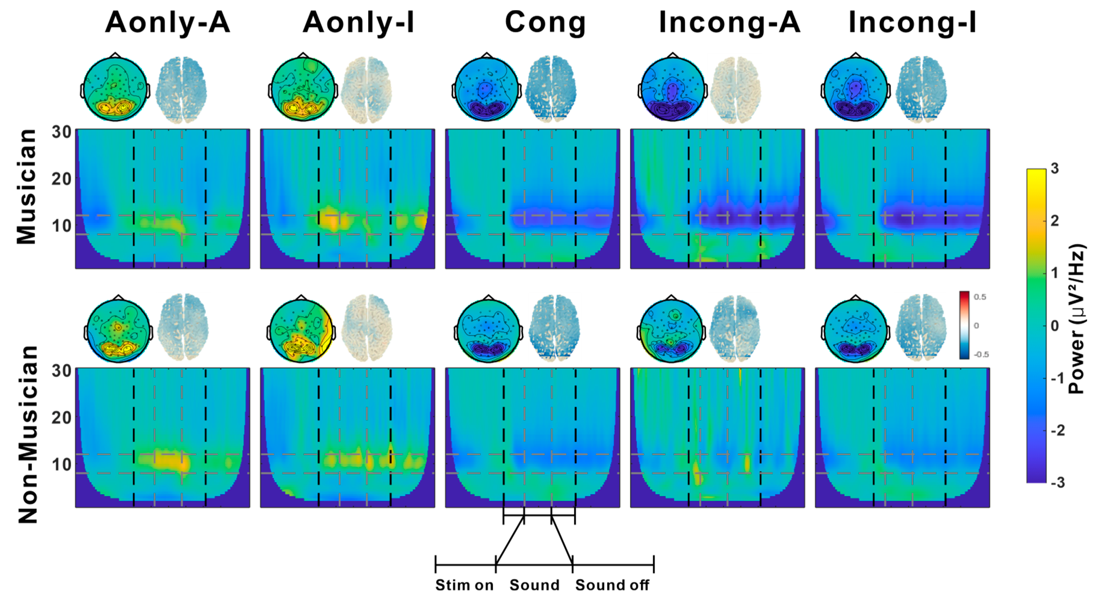 - MacLean, J.; Stirn, J.; Bidelman, G.M. Alpha-Band Brain Activity Shapes Online Perceptual Learning of Concurrent Speech Differentially in Musicians vs. Nonmusicians. Eur. J. Neurosci. 2025, 61, e70100. [Google Scholar] [CrossRef] [PubMed]