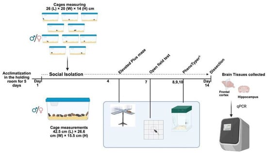 - Ieraci, A.; Mallei, A.; Popoli, M. Social Isolation Stress Induces Anxious-Depressive-Like Behavior and Alterations of Neuroplasticity-Related Genes in Adult Male Mice. Neural Plast. 2016, 2016, 6212983. [Google Scholar] [CrossRef]
