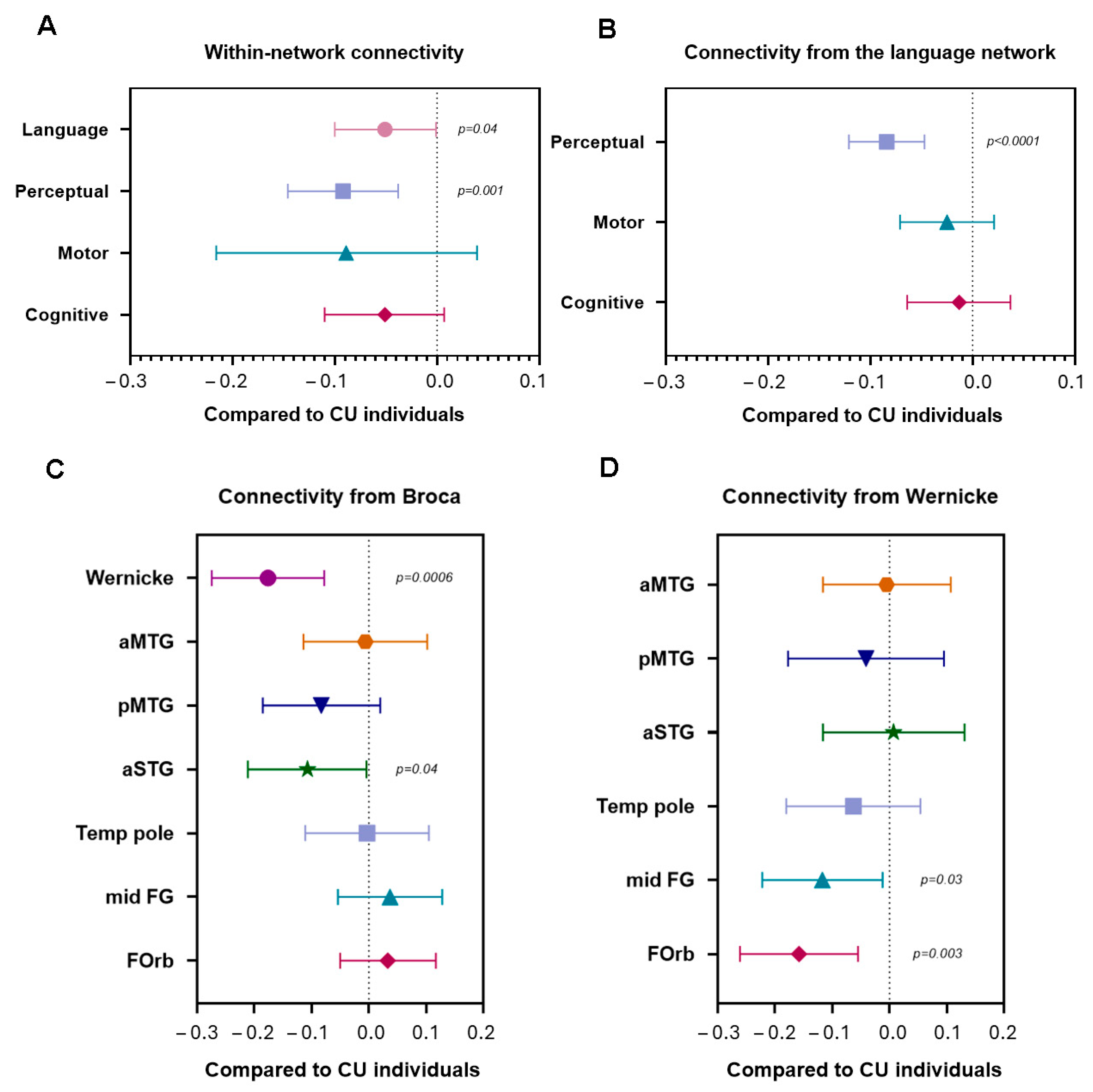 3.3. Relationship Between Clinical Scores and Language System Connectivity (Aim 2)