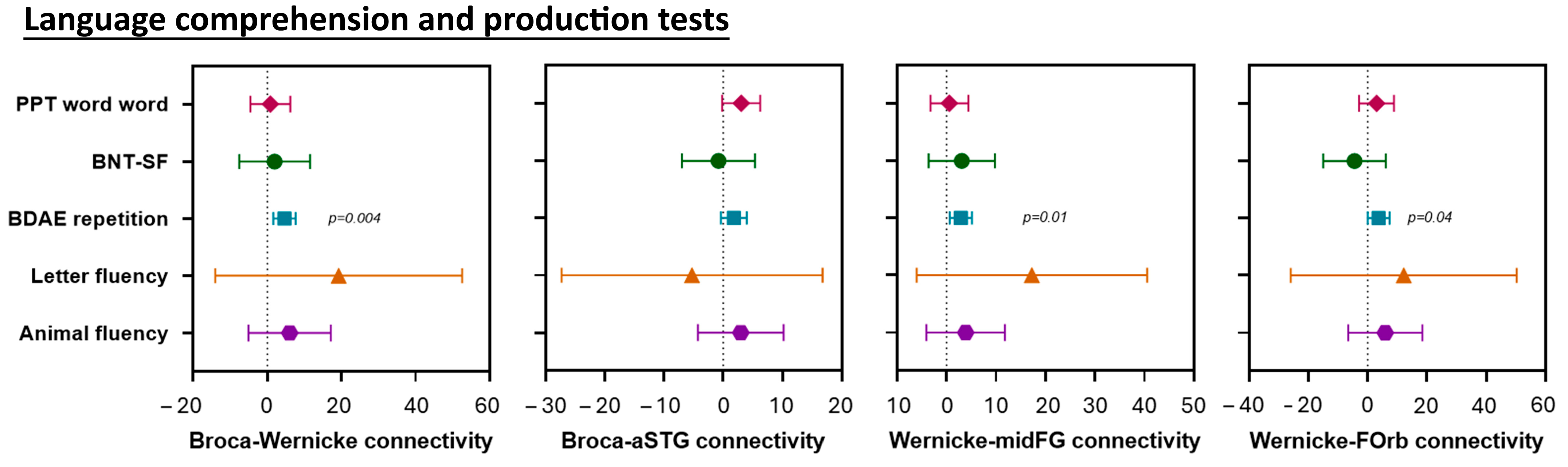 4.1. Functional Connectivity Breakdown in the Language Processing System